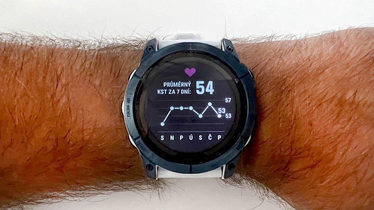 Zároveň vám hodinky na druhé obrazovce ukáží týdenní přehled vaší klidové tepové frekvence.