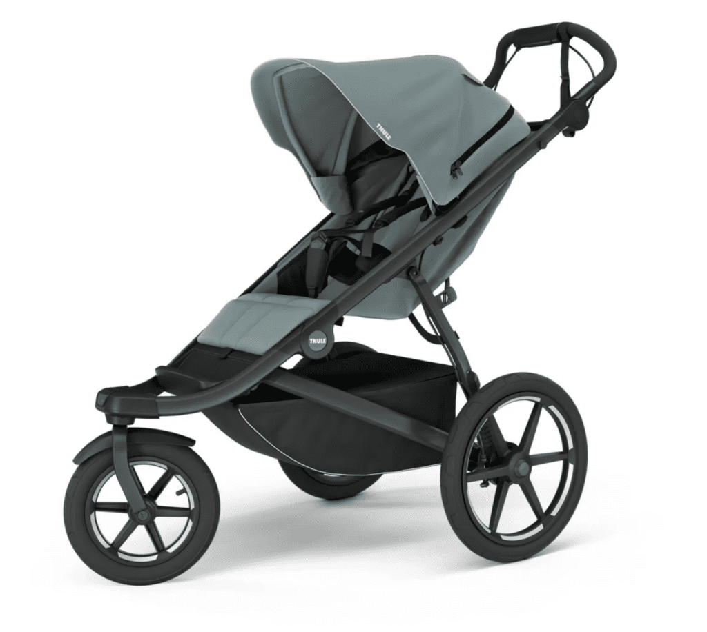 - Používejte vhodnou obuv a oblečení: Stejně jako při běžném běhu je důležité mít kvalitní běžecké boty a pohodlné oblečení. Pokud běháte v proměnlivém počasí, nezapomeňte i na ochranu pro dítě – například pláštěnku na kočárek.